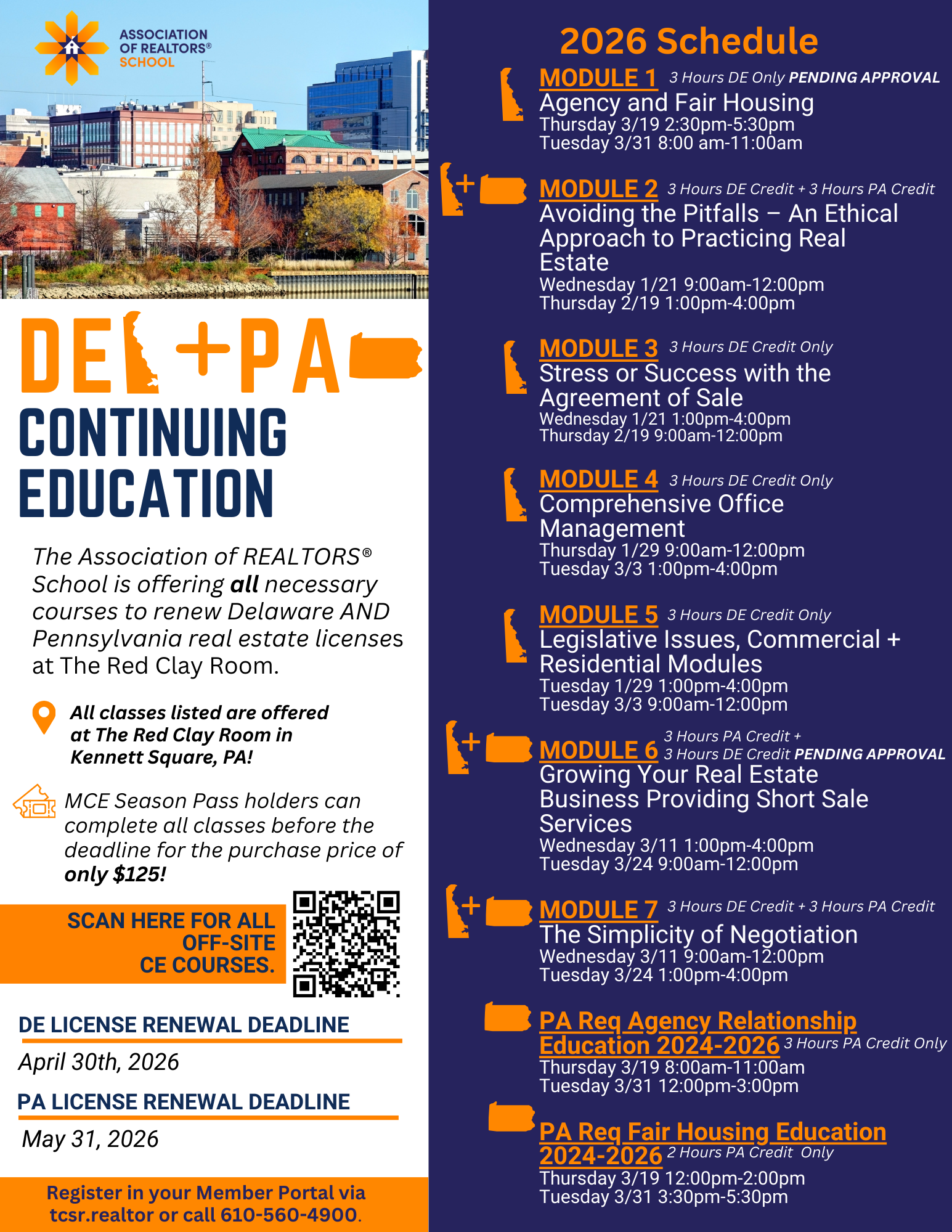 Delaware Courses Available for Registration at The Red Clay Room, Kennett Square